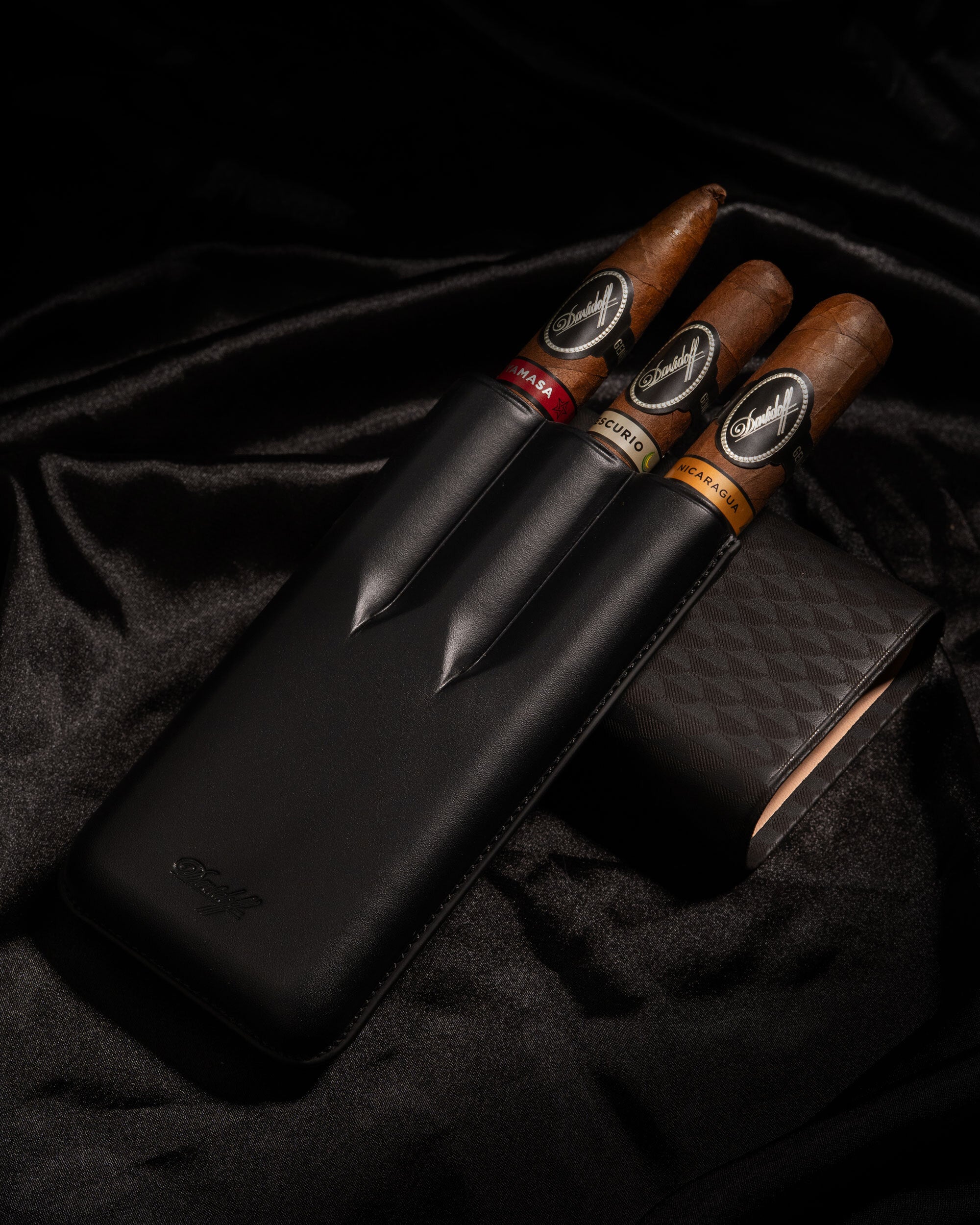 Davidoff Cigar Case Curing (XL-3 / Black Leather) + 3 Cigars